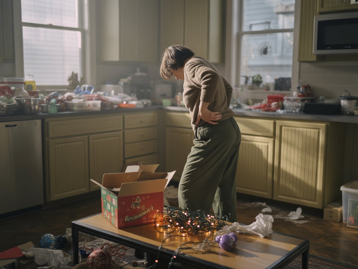 And now you’re standing in a living room that looks “fine” from far away… but up close it’s clutter, crumbs, gifts with nowhere to live, and a fridge full of mystery containers.