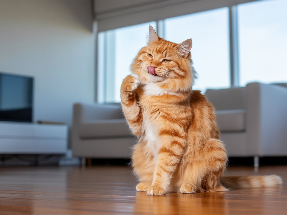 Pets licking their paws.