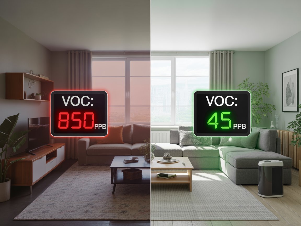 When I tested her indoor air quality, VOC levels registered at 847 ppb.